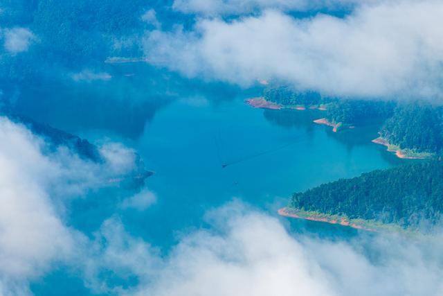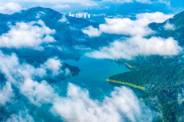 2025年9月7日,广西梧州蒙山县茶山水库云雾缭绕,生态景观如画。(未经授权,请勿转载)