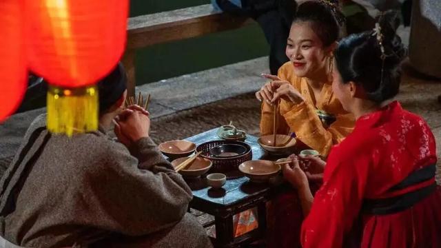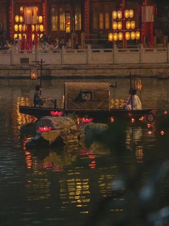 如果说隋唐洛阳城的镜头复原了盛世下的皇室贵族生活,那么在洛邑古城则更多是平民百姓的日常百态:漫步新潭柳岸,岸边人流如织,尽是往来的“市井百姓”;步入宫灯街巷,古朴的木桌前尽是在畅谈江湖的“公子”“侠女”... ...