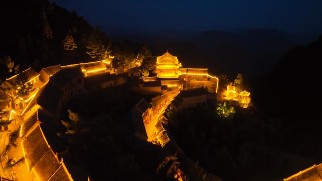 白天的抱犊寨古香古色,韵味十足,走在栈道上,山间美景尽收眼底;夜晚古寨灯火渐次点亮,宛如一场盛大的悬崖灯宴。抱犊古寨的美从早到晚,迸发着原始而蓬勃的生命力。