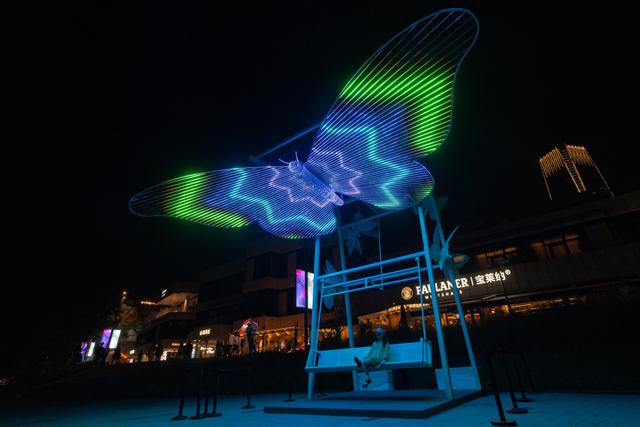 徐汇区还联动米哈游在鑫耀·光环live空中连廊区域,打造原创角色IP“长夜月”主题雕塑,配合灯光、烟雾泡泡机等烘托氛围,为来往消费者打造更具互动感的光影效果与视觉体验。
