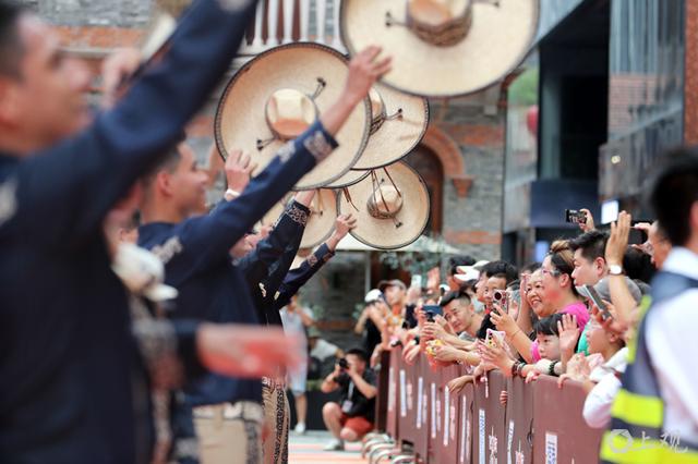 在虹口滨港商业中心今潮8弄,来自墨西哥、希腊、克罗地亚、瑞士的四大方队带来各具风情的表演,沿途市民、游客纷纷举起手机记录下难忘瞬间,观众表示“仿佛走遍世界也不过一条街的距离”。