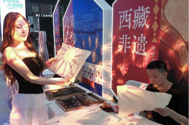 西藏非遗区以藏式雕版拓印为核心,两块精心雕刻的实木雕版——“吉祥四瑞”与“非遗藏戏”,成为整场活动的“文化焦点”,让市民亲手触摸藏地非遗的千年匠心。市民可在指导下,亲手完成专属拓印作品。宣纸的古朴质感与朱砂墨的鲜明色彩相得益彰,让市民直观感受藏式雕版拓印“既是技艺,也是文化载体”的独特价值。
