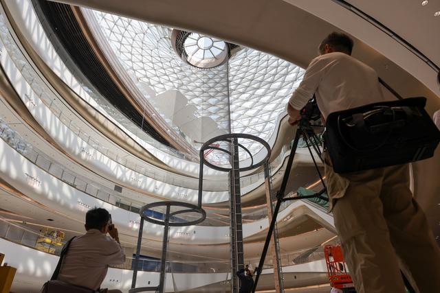 记者看到,作为国内首家艺术奥莱,王府井WellTown的设计充满巧思,其外部有华北地区最大的裸眼3D大屏幕,虽然现在还未亮起,已经初具网红之势。步入其中,1号中庭“光之境”的穹顶呈螺旋绽放形态,未来将有屏幕“光带”盘旋而上。2号中庭“水之境”藏着30多米高的“空中瀑布”,“穹顶上安装了水幕装置,目前正在调试,未来将有‘瀑布’从6层楼顶倾泻而下,营造出沉浸式美学体验空间。”北京环汇置业有限公司总经理助理周路苇说,2号中庭周边将设置高端国际精品品牌。