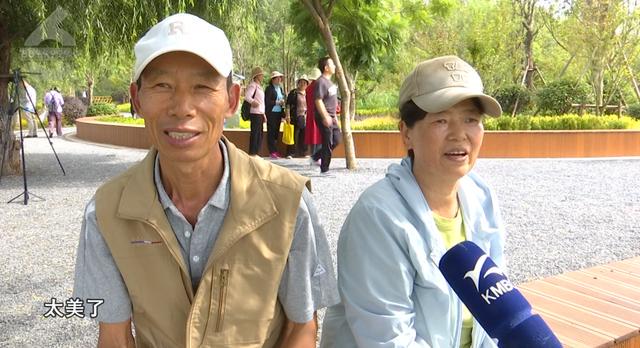 市民:“很漂亮,今早特意过来看看听说国庆节要开放了,感觉很美丽。对面有西山近处有滇池,这里还有草地很漂亮。”