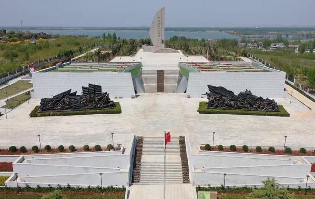步入纪念园,首先映入眼帘的是两组气势恢宏的雕塑——“铁道雄风”与“微湖曙光”。这两座各长25米、宽6米、高9米的巨作,曾因体量宏大、人物众多荣获“世界吉尼斯记录”。右侧的“铁道雄风”以火车头为造型,生动刻画了鲁南铁道大队37位英雄形象。洪振海大队长持枪屹立,王志胜副大队长手持大刀奋勇杀敌,再现了游击队员在津浦、临枣铁道线上英勇作战的壮观场面。左侧的“微湖曙光”则以航船为造型,展现了微湖大队护送党政军领导人的历史场景。两座雕塑遥相呼应,共同诉说着那段烽火岁月中的英雄事迹。