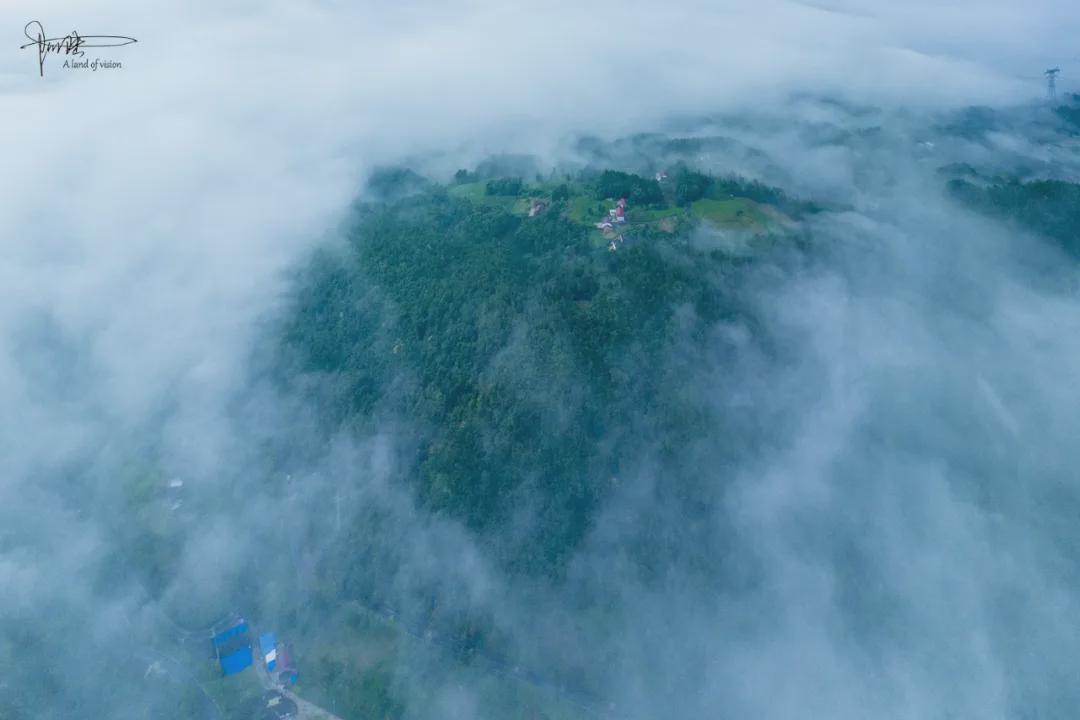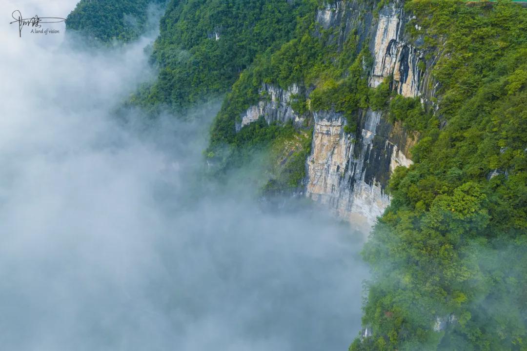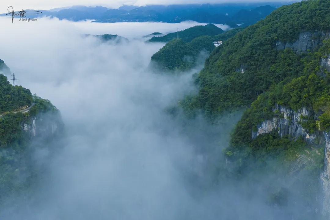 幸运的是,这天早上在经过“千丈岩”的时候,竟然偶遇云海奇观,加上空中仅飘着小雨,便停到路边空地,航拍了一圈,算是这趟351国道之行最值得纪念的风景。