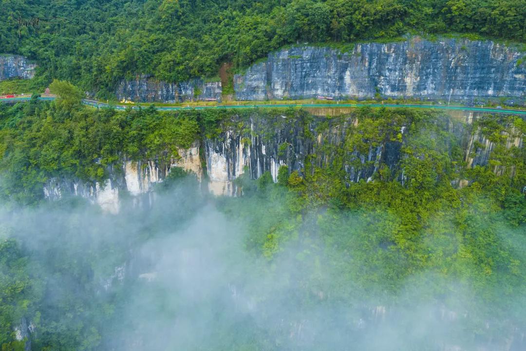 有趣的是事后了解,千丈岩段素来以其险峻的山势和崎岖的道路而闻名,尤其一侧的岩体因地质结构的复杂性和长期地质作用而逐渐松动,常被过路司机们戏称为是“最险路段”。但我来这里的时候其实刚好赶上它焕然一新,也算是最安全的时候,因为就在今年前两个月,刚经过五峰交通公路部门精心整治。