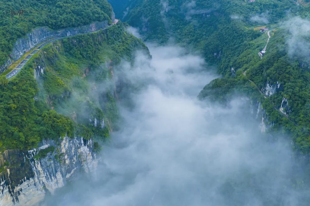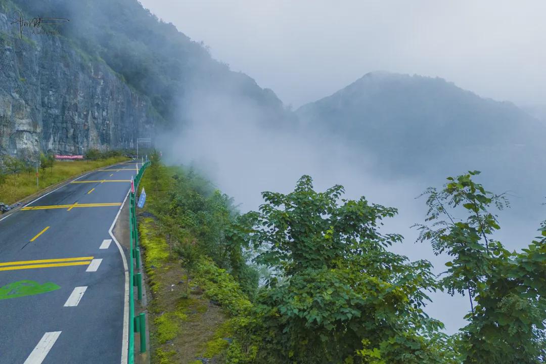而这样的机会其实非常难得,从我的实际经历上看,早上8点不到从苏家河公路服务区的驿站出发,抵达这里的时候才8点40分左右。从放飞无人机到拍摄结束,最多20分钟的时间,那滚滚云雾便奔腾而至,以肉眼可见的速度迅速弥漫到身前,而紧接着便是跟前一天一样,大部分时候只能在视野仅几米又湿辘辘的环境下,以龟速行驶了。