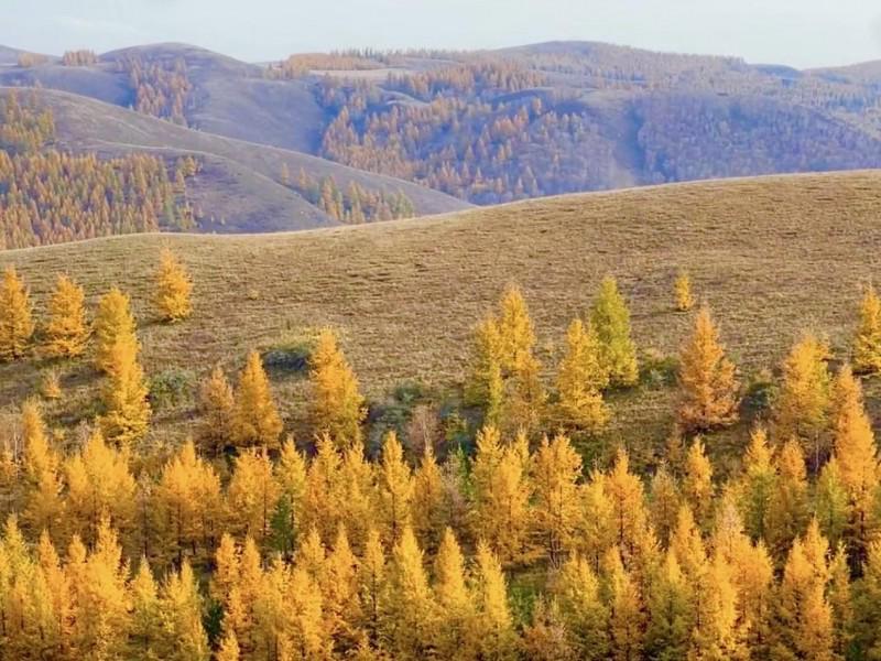当塞北那带着丝丝凉意的秋风,轻轻拂过敕勒川广袤无垠的草甸,曾经“风吹草低见牛羊”那满眼盛夏的碧绿波浪,仿佛被大自然的画笔轻轻一挥,悄然换上了金褐交织的华丽盛装。