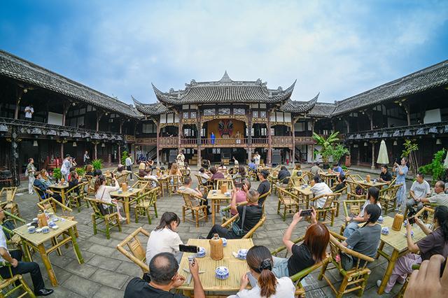 围坐庭院中,国际主播网红被经典川剧《安安送米》的婉转剧情所吸引,不时举起手机拍摄记录精彩瞬间,并通过社交媒体分享给家人和朋友。来自俄罗斯的索菲亚感慨道:“这里的古建筑和自然环境令人惊艳,充满浓郁的中国风情。川剧真的太有意思了,中国风的音乐也非常动听。我特别喜欢。”