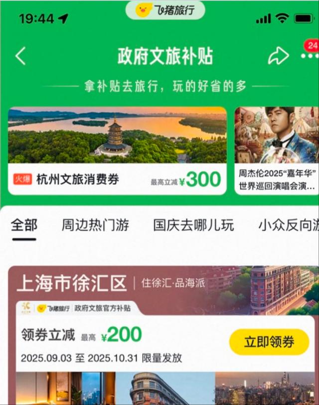 购买家电、3C数码产品、家居用品可以领取“国补”已经不是新鲜事,没想到今年中秋国庆黄金周期间,出去旅游也可以领取“政府补贴”了。