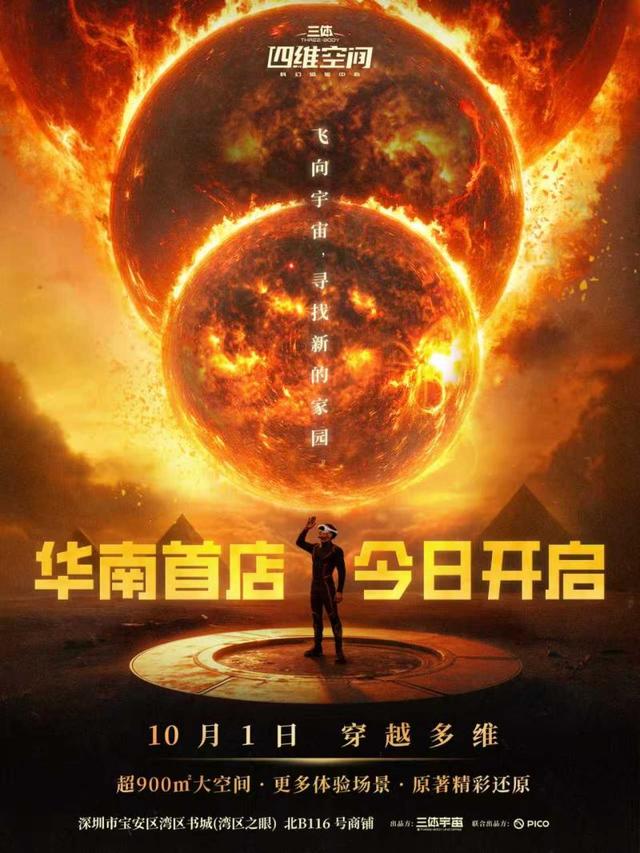 “三体・四维空间”由三体IP全球独家版权方及运营方三体宇宙全流程开发、制作和运营,在全国各大城市陆续落成,是以“虚实共生,多维沉浸”为核心打造的全球首个《三体》主题科幻体验综合体,内设院线模式的VR大空间虚拟体验区、衍生品旗舰店、主题打卡装置和轻餐饮等多元复合体验。该项目旨在瞄准科幻与科技体验的蓝海市场,通过沉浸式体验,满足不同地区和群体对科幻、科技和科普教育的需求,打造一个面向全年龄段的科幻体验中心。