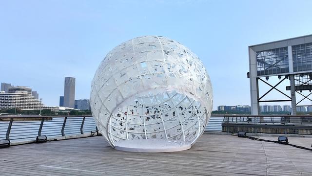 位于西岸梦中心船坞亲水平台的大型艺术装置《月满》,源自上海当代艺术博物馆(PSA)“月来月美”城市艺术项目。