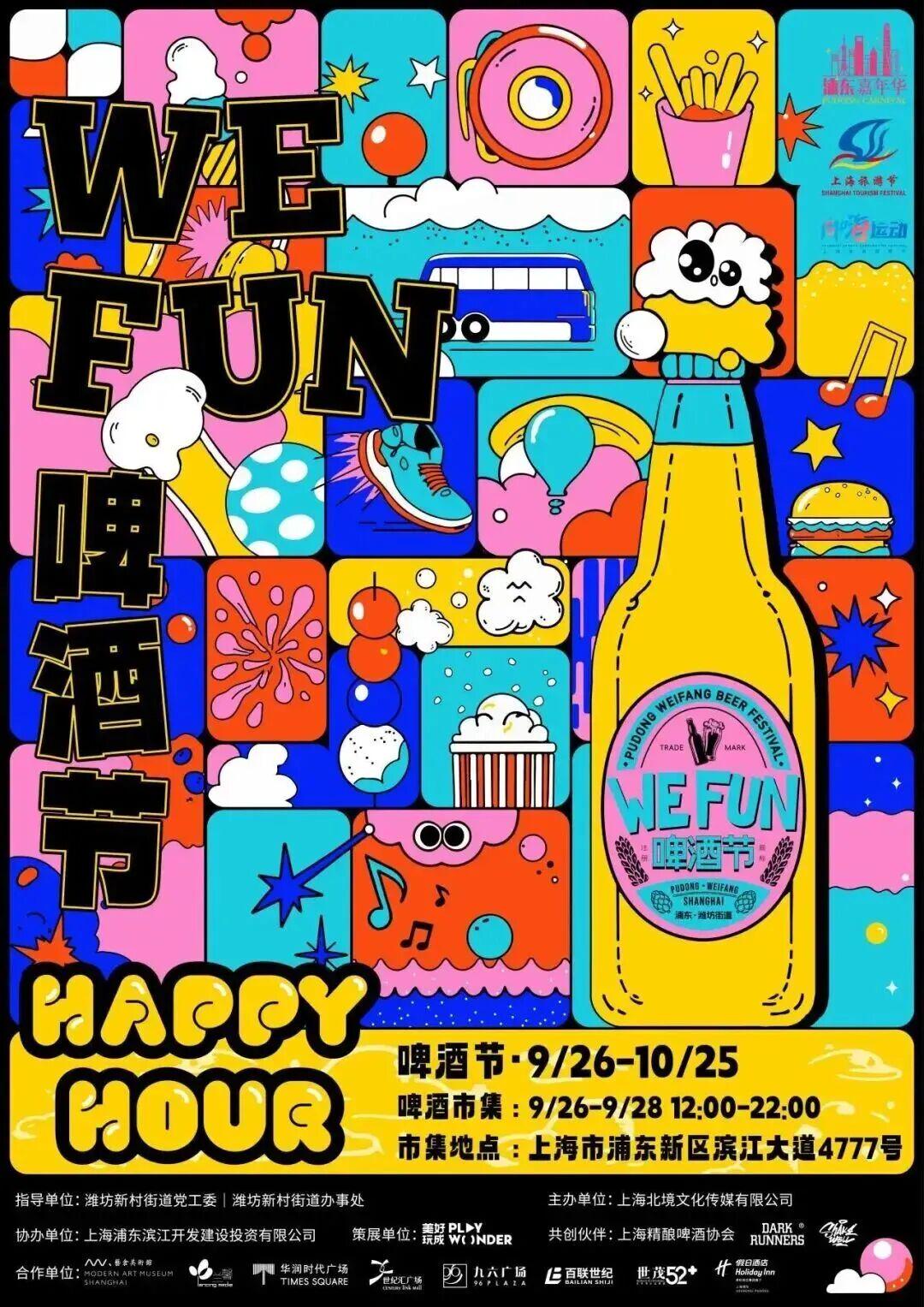 We Fun啤酒节以“艺术+啤酒”为主题,在江边开展啤酒市集,联动辖区商圈、美术馆、酒店、餐饮等各类资源,打造啤酒、艺术、美食、音乐的跨界盛宴。