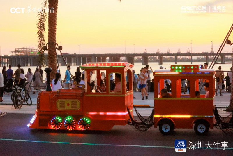除了都市沙滩的海滨乐趣,公园推出的“前海潮汐生活节”更带来多维沉浸体验。星空草坪上,海风与椰影相伴,市民可席地而坐尽享野趣;环绕草坪的300米音乐喷泉每日献上三场光影水舞秀,打造声光交织的视听盛宴。草坪两侧汇聚多家特色餐饮品牌,漫游代步车、双人自行车则为探索公园增添便利。假日期间,海边区域还将轮番上演音乐演出、露天放映、艺术沙龙、日咖夜酒等活动,为市民营造兼具格调与温度的休闲空间。