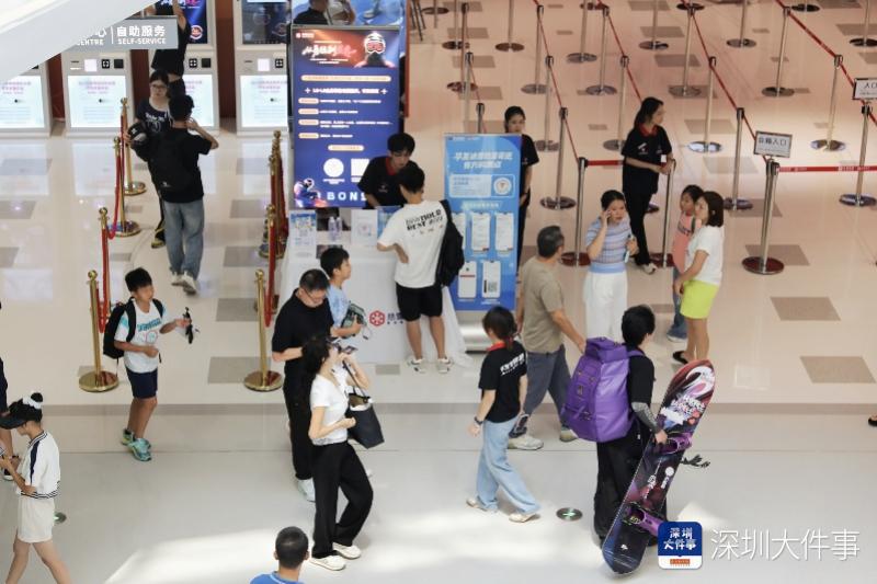 跟着打卡人群往室内走,人声交织,一股热火朝天的气息扑面而来,冰雪世界服务台被咨询的人群围得水泄不通。有人询问办年卡的优惠力度,有人指着活动海报追问雪道难度,有人抱着滑雪靴反复确认尺码,在往来的人群中,记者遇到了带着两个孩子、脚步匆匆的母女仨,妈妈周女士告诉记者:她老家在东北,滑雪这事儿是刻在DNA里面的,她表示,“以前一放假就盼着回老家滑雪,平时只能去广州的雪场解馋。没想到深圳也能建起这么棒的室内雪场!”周女士告诉记者,雪场9月29日刚开业,她就第一时间预约了。“今天特地带孩子来‘开板’,既是过瘾,也算解了乡愁。”说话间,她的目光投向场馆内,忍不住感叹:“深圳真是太有实力了,能打造这么大规模的冰雪世界,给了我们一个大大的惊喜!”她身旁的大女儿也忍不住补充道:“感觉好震撼!”