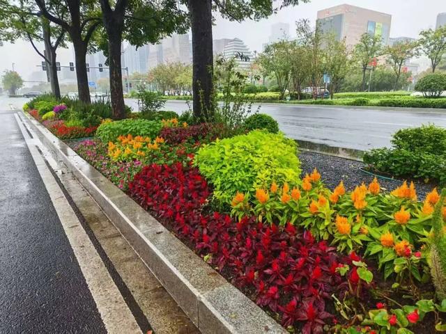 经南八路以花缀路韵,点点鲜妍悄然绽,染透国庆浓情。
