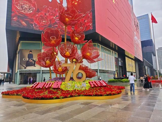 丹尼斯大卫城锦簇花境,以双节同庆之美,贺中华人民共和国成立76周年。