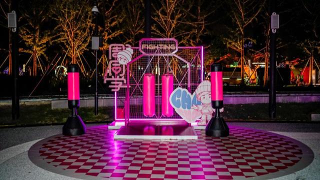 航程的结束,并非体验的终点。当意犹未尽的游客登岸,一座标志性的大烟囱下,巨大的“周同学”卡通雕塑正迎接着来自四面八方的访客。雕塑周边,一个精心打造的粉色主题梦幻运动场,为市民提供了休闲体验的又一空间。孩子们在篮球架旁、乒乓球桌前奔跑嬉戏,欢声笑语此起彼伏,运动场成了亲子互动的欢乐场。