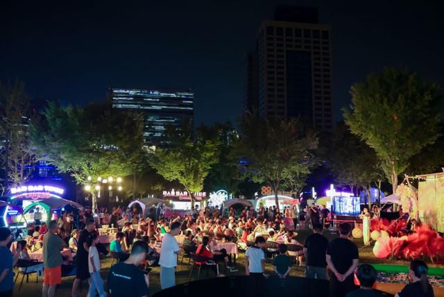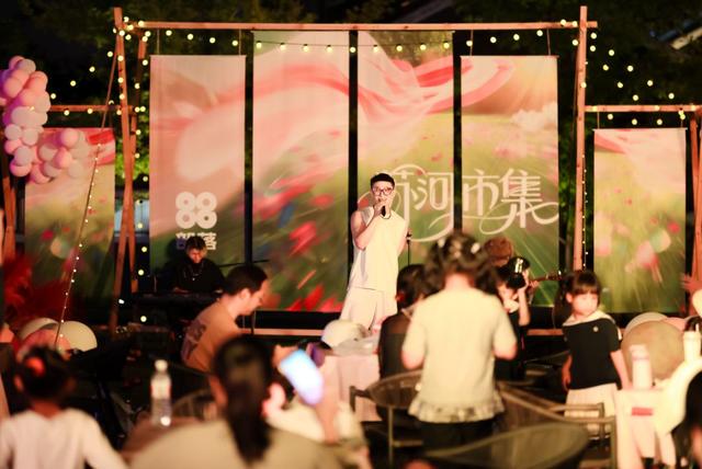 与此同时,不远处的“88部落”苏河市集也迎来了一天中最热闹的时刻。创意摊位琳琅满目,美食饮品香气四溢,露天音乐会舞台上天幕低垂,歌声飘扬。从流行、民谣到爵士,每日不重样的免费音乐演出,特别是为“杰迷”设置的专属场,让不同年龄段的市民都能在此找到共鸣。市民张女士原本只是遛狗经过,被歌声吸引后便落座观赏,“本来想说听一首就走,结果听到了非常棒的音乐,就一直待下去了。”市集巧妙地融合了休闲体验、消费场景与艺术氛围,让市民在中心城区即可享受露营般的惬意。