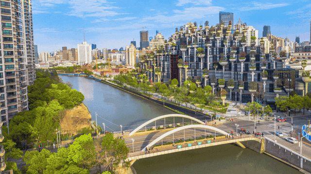位于苏州河畔的“天安千树”,整体创意以黄山为设计灵感,建筑屋顶错落有致,仿佛千树矗立。河畔绿荫环绕,山丘般的建筑造型形态各异,融入了1公里长的滨河步道和公共公园,为游客提供了休闲漫步的好去处。