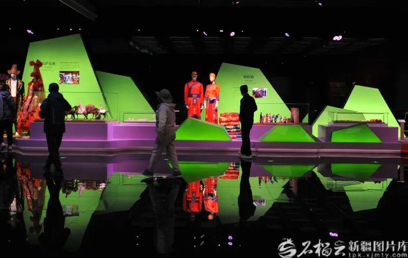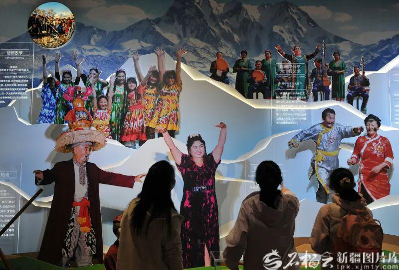 10月2日,游客在新疆非物质文化遗产馆“节庆中的非遗”陈列馆里参观。石榴云/新疆日报记者 秦梅花摄