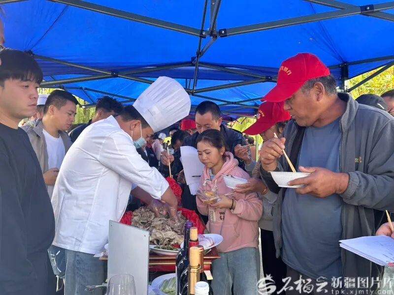 10月2日至4日,巴音郭楞蒙古自治州和硕县举行了2025年新疆是个好地方·第二届金沙滩沙漠露营大会暨首届“援疆杯”金沙滩沙漠体育大会。图为10月3日,游客在美食大赛上品尝美食。石榴云/新疆日报记者 宋卫国摄