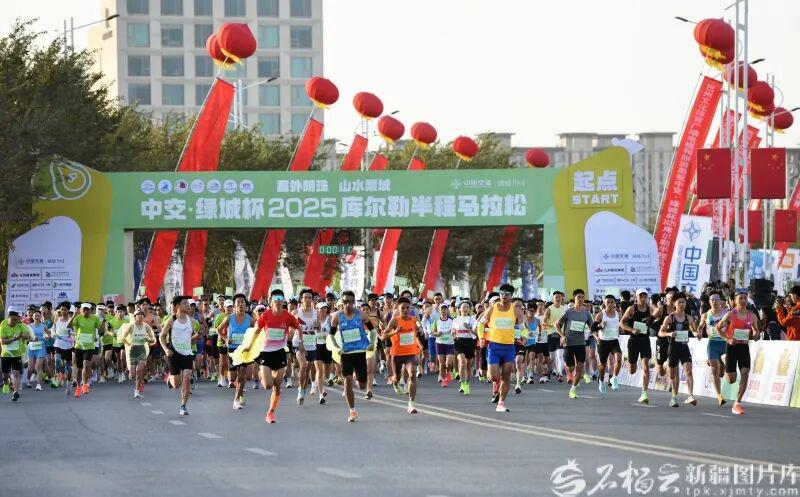 10月2日,中交·绿城杯2025库尔勒半程马拉松在库尔勒市启幕,来自全国22个省区市的近万名跑者齐聚“塞外明珠·山水梨城”,在秋日赛道上感受城市魅力与运动激情。石榴云/新疆日报记者 王立华摄