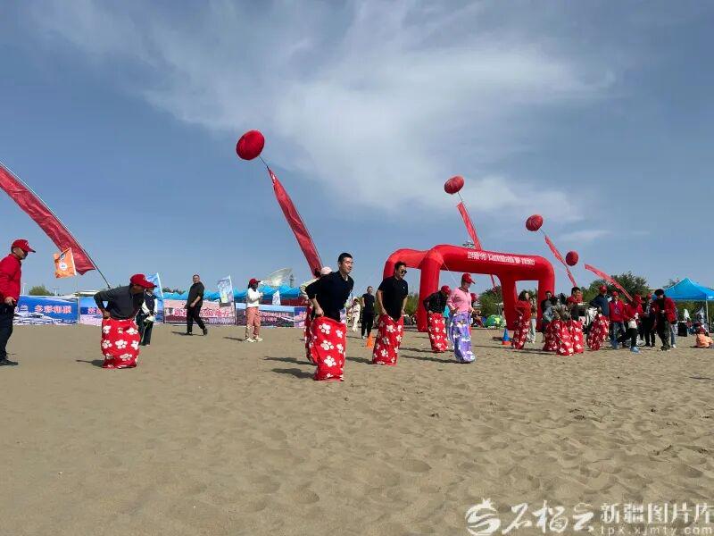10月3日,一场欢乐的袋鼠跳比赛在沙滩上进行。石榴云/新疆日报记者 宋卫国摄