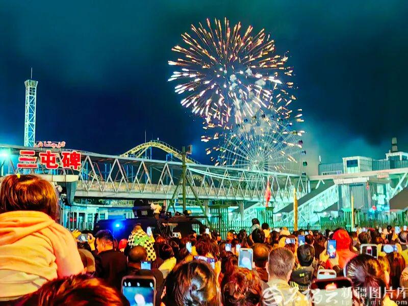 10月1日晚,在乌鲁木齐市水上乐园,市民及游客在观看烟花。石榴云/新疆日报记者 李雄心摄