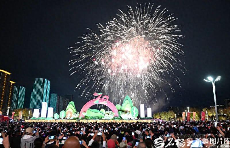 10月1日晚,乌鲁木齐文化公园燃放的烟花。石榴云/新疆日报记者 韩亮摄