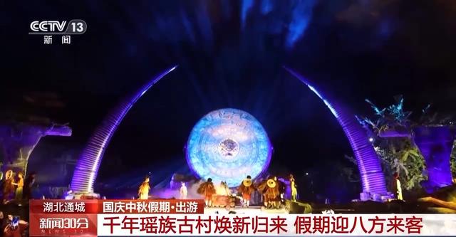 湖北通城县内冲古瑶村,地处湘鄂交界,是湖北唯一的特色瑶族村寨,完成升级改造后在这个假期正式开门迎客。除了瑶族拦门酒、“瑶旅文牒”打卡等传统项目,景区还推出了大型户外实景剧《瑶望千年·云歌》,借助5D声场灯光与水幕火环特效,鲜活还原了瑶族先民“逐水而居、遇山而垦”的迁徙历程。