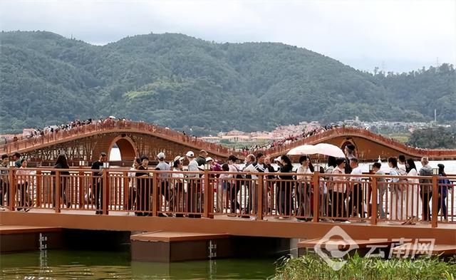 昆明滇池绿道草海开合浮桥成为假日旅游新晋“网红打卡地”。杨峥 摄