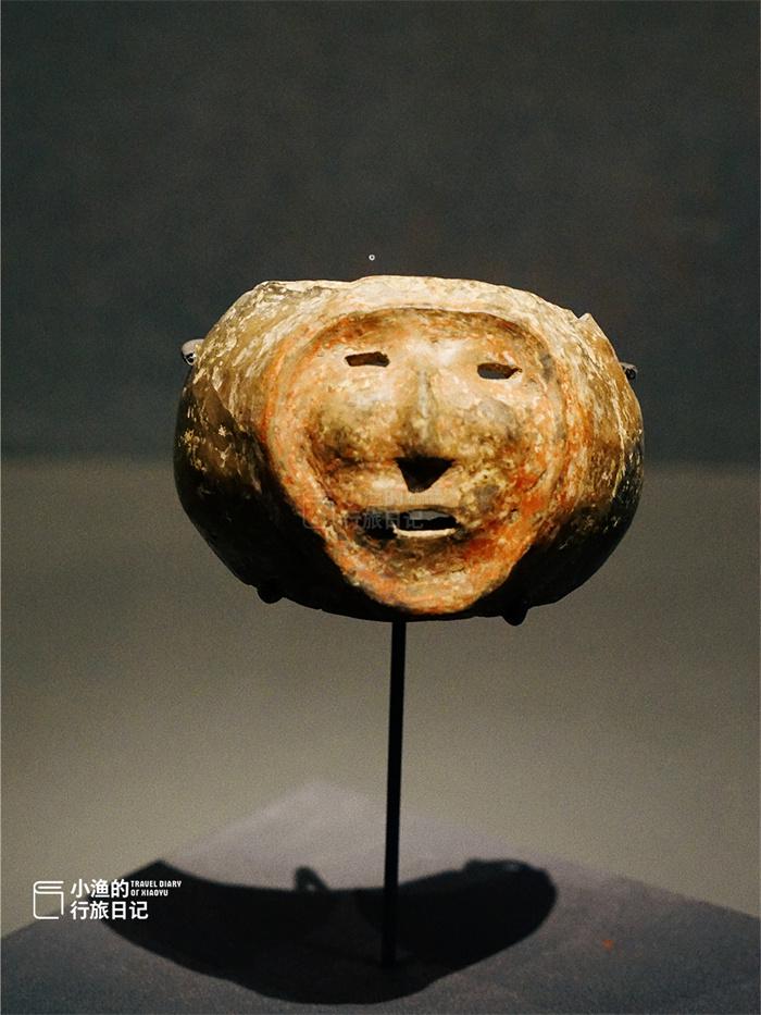 浮雕人面饰残陶器,像一个南瓜上长了张猴子脸,还发出了迷人的微笑。