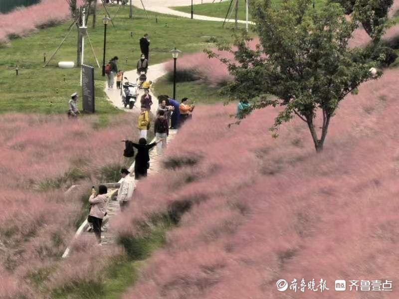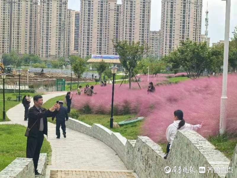 近日,连绵的秋雨终于停下了脚步,泰安迎来了久违的阳光。10月13日,雨过天晴,岱岳区粥店路街角公园里的粉黛乱子草如期绽放,为泰城增添了一抹浪漫的秋日色彩,吸引了众多市民前来打卡拍照。