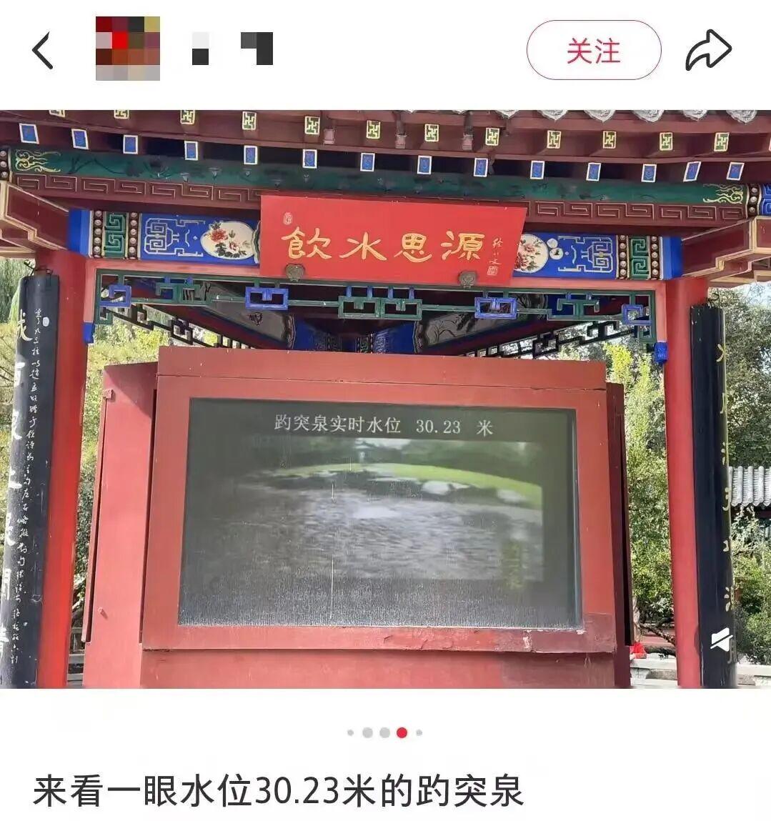 10月13日趵突泉实时水位显示。图/社交平台截图