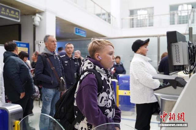 10月11日,黑龙江饶河,俄罗斯游客在饶河口岸办理入境。随着中方对俄免签政策的试行,黑龙江省双鸭山市饶河县迎来大批俄罗斯游客。据了解,饶河县具有便利的赴俄通道,饶河口岸1989年被国务院批准为国家一类口岸,承担着促进中俄经贸往来和文化交流的重要使命。自9月15日,中国对俄罗斯试行免签政策以来,饶河口岸入境俄罗斯旅客同比增长 30%。俄罗斯游客在饶河县品尝中国美食、体验中式按摩,穿梭于各大商超内,购买生活用品。口岸的建设不仅便利了人员往来,更推动了区域经济的深度融合。中新社记者 赵宇航 摄