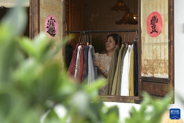 10月14日,李祖村一家店铺的工作人员在整理货品。