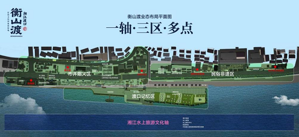 衡山渡以“文化为核、活态传承”为理念,规划“一轴·三区·多点”的空间格局,打造集渡口记忆、市井烟火与非遗体验于一体的湘江文旅新名片。