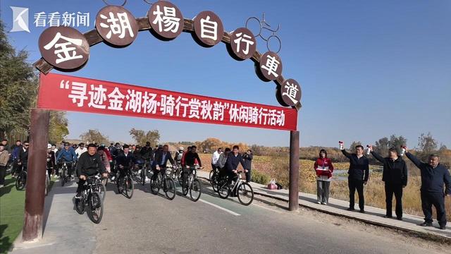 在“寻迹金胡杨·骑行赏秋韵”活动中,游客可骑行穿行于胡杨林间的蜿蜒小径,近距离感受胡杨的雄浑壮美,沉浸于叶羌河水的潺潺流淌之中。