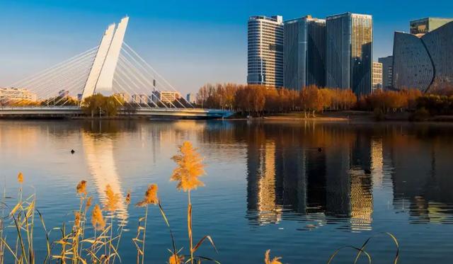 龙子湖拥有广阔水面和湿地,通过简洁流畅的地形、大面积的草坪和高大乔木组合,塑造出疏林草地的景观效果,也是秋天散步的绝佳场地。