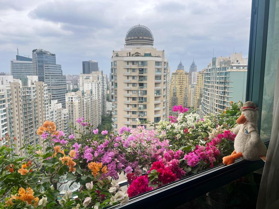 居家赏秋 | 气温下降,天气适宜,居民家中的三角梅在秋风中争相绽放,足不出户就可赏秋日之美。 新民晚报记者 周馨 摄