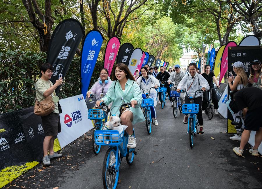 秋日骑游 | 10月18日,“Hello 100”定向骑游活动在金山区山阳田园举行,二三十公里的行程串联起山阳田园、金山嘴渔村、水库村等标志点位。骑手们经过乡间小道,穿越城市林荫,尽情享受秋日的惬意。 新民晚报记者 陶磊 摄