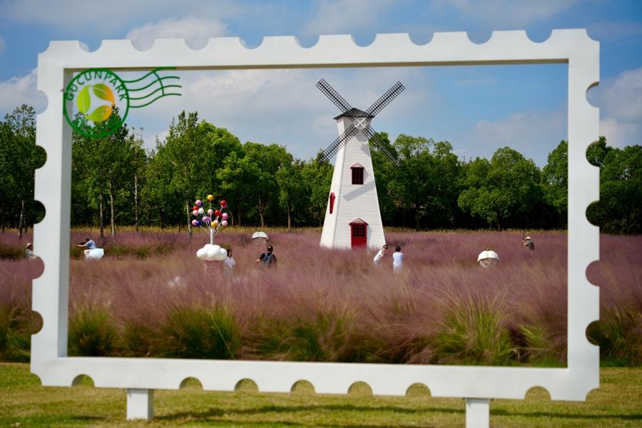 邮寄秋天 | 顾村公园的粉黛草花海进入最佳观赏期。今年,粉黛园新设了特色拍照打卡点,等待着每一名寻梦者。 新民晚报记者 刘歆 摄