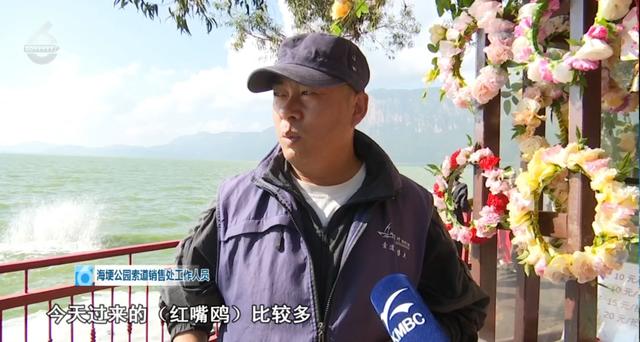 海埂公园索道销售处工作人员:“今天过来的红嘴鸥比较多,前几天只是偶尔过来一两只,过来以后就去东码头了。今天过来的红嘴鸥比较多,已经定了,红嘴鸥定了就不会走了。”