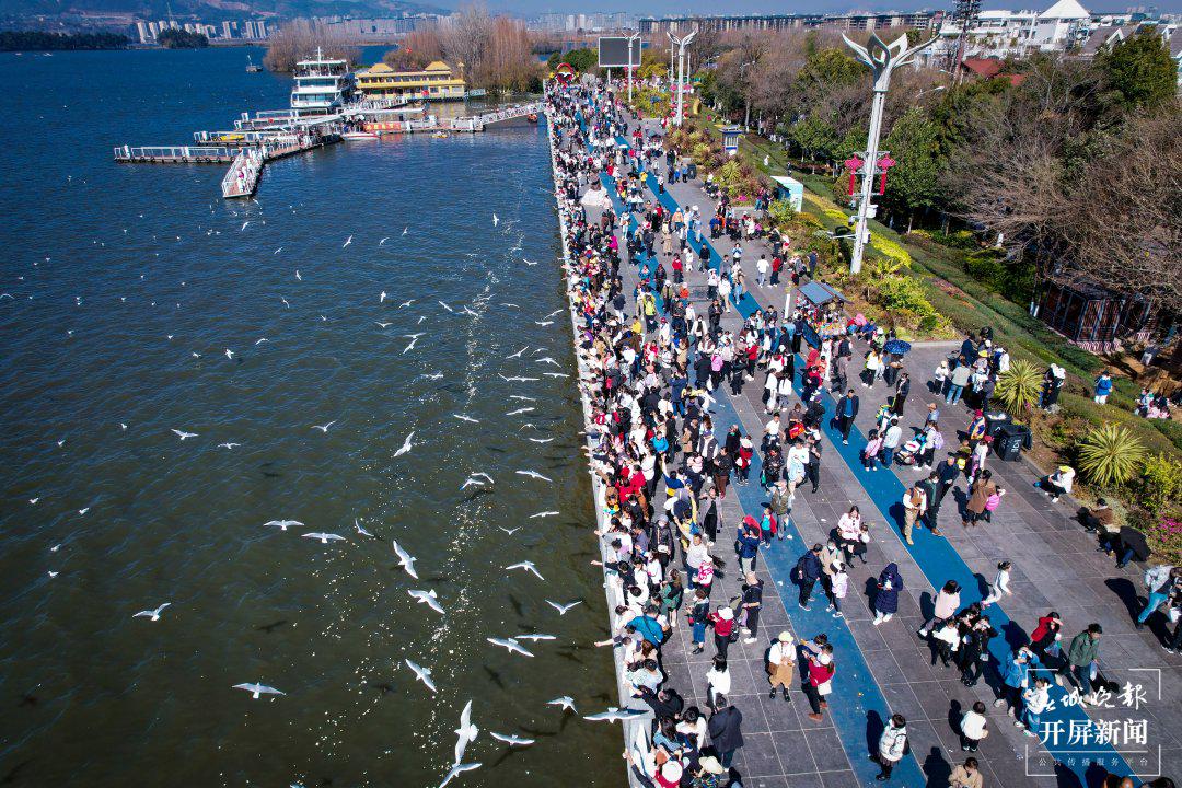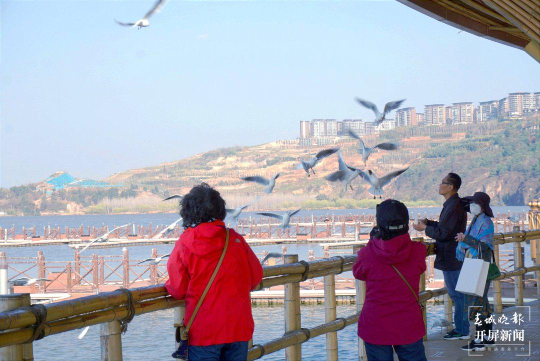 阳光掠过滇池水面,波光粼粼、美不胜收。观景台笔直且开阔,绵延数公里,无任何遮挡,这里的红嘴鸥最多,是观赏鸥鸟成群、西山美景的最佳场地。