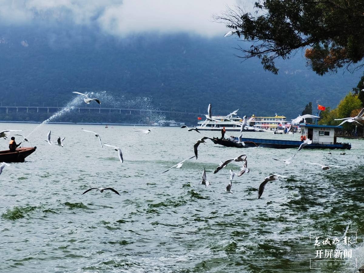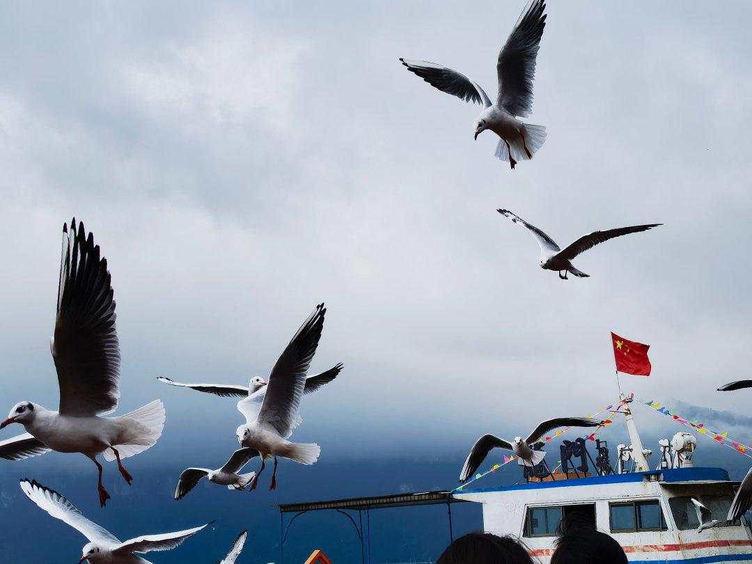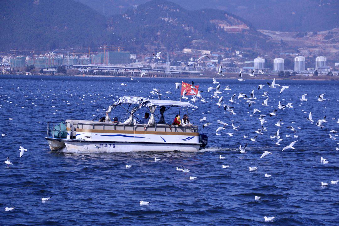 每年冬季,滇池成为红嘴鸥释放天性、回归自然的最好去处。红嘴鸥喜欢追逐航行的游船,乘坐在滇池游船上,在欣赏滇池湖光山色的同时,还可以欣赏红嘴鸥翱翔的曼妙身姿,十分惬意。