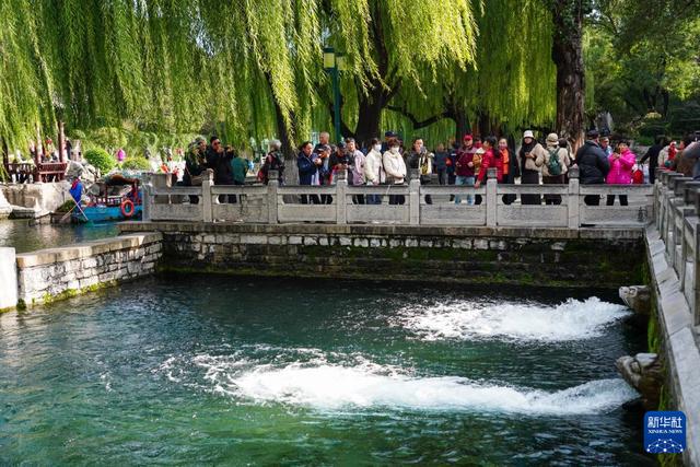 近日,山东省济南市泉水喷涌有力,吸引了众多市民和游客到泉水绿道行走,观赏泉水景观。济南市泉水绿道总长约6.6公里,沿护城河和大明湖公园而建,串联起多个泉水景观和名胜古迹。