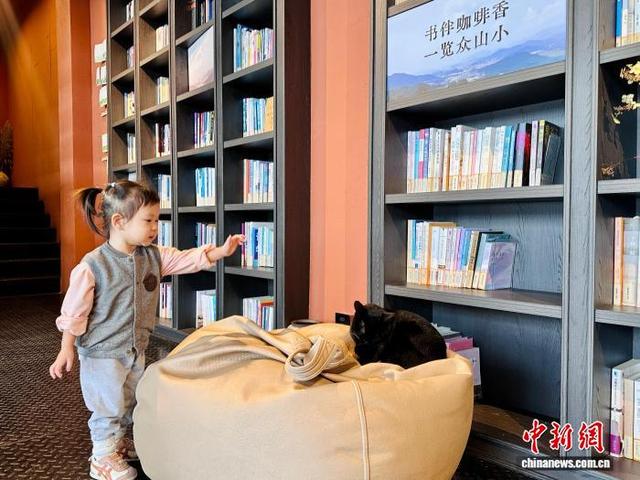 10月22日,在浙江省宁波市奉化区,溪口镇东山村的一家咖啡店吸引不少游客打卡。这座开在半山腰近400米海拔处的咖啡店距离市区一个小时车程,能将宁波溪口雪窦山风景名胜区的风光尽收眼底,成为“网红”地,自去年开业以来已经吸引十多万人次打卡,为乡村经济发展注入新流量。图为小女孩与咖啡店的猫互动。中新社记者 张斌 摄