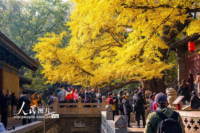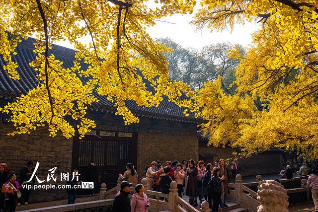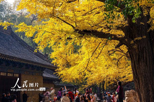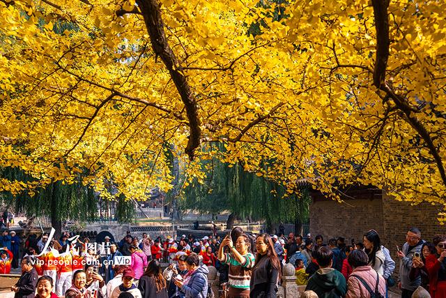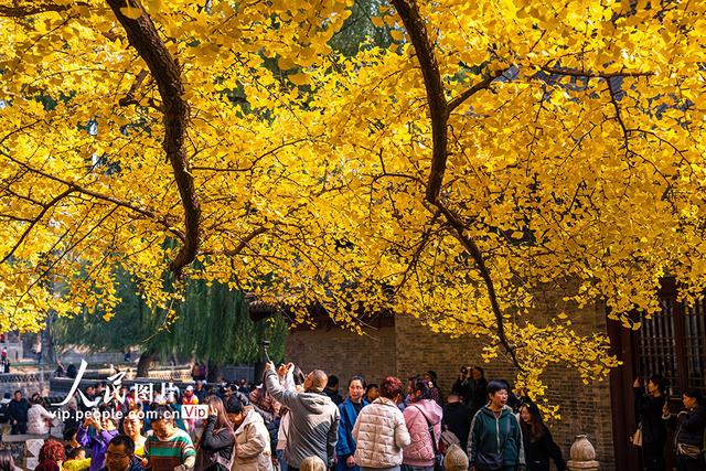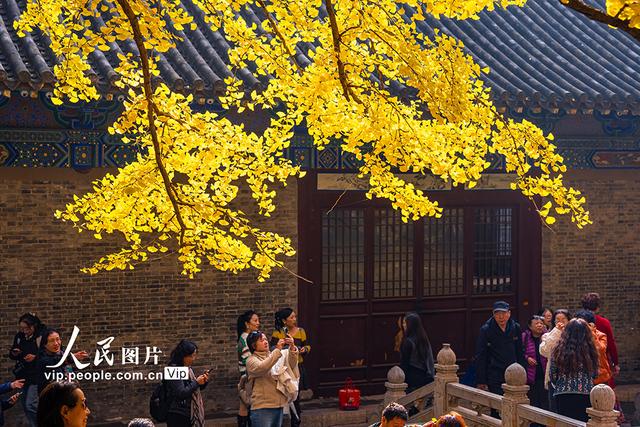 山西太原:银杏金黄秋意浓【2】 2025年10月29日,山西省太原市晋源区晋祠博物馆内多棵百年银杏进入最佳观赏期,吸引市民和游客驻足观赏、拍照留念。张锋摄(人民图片网)